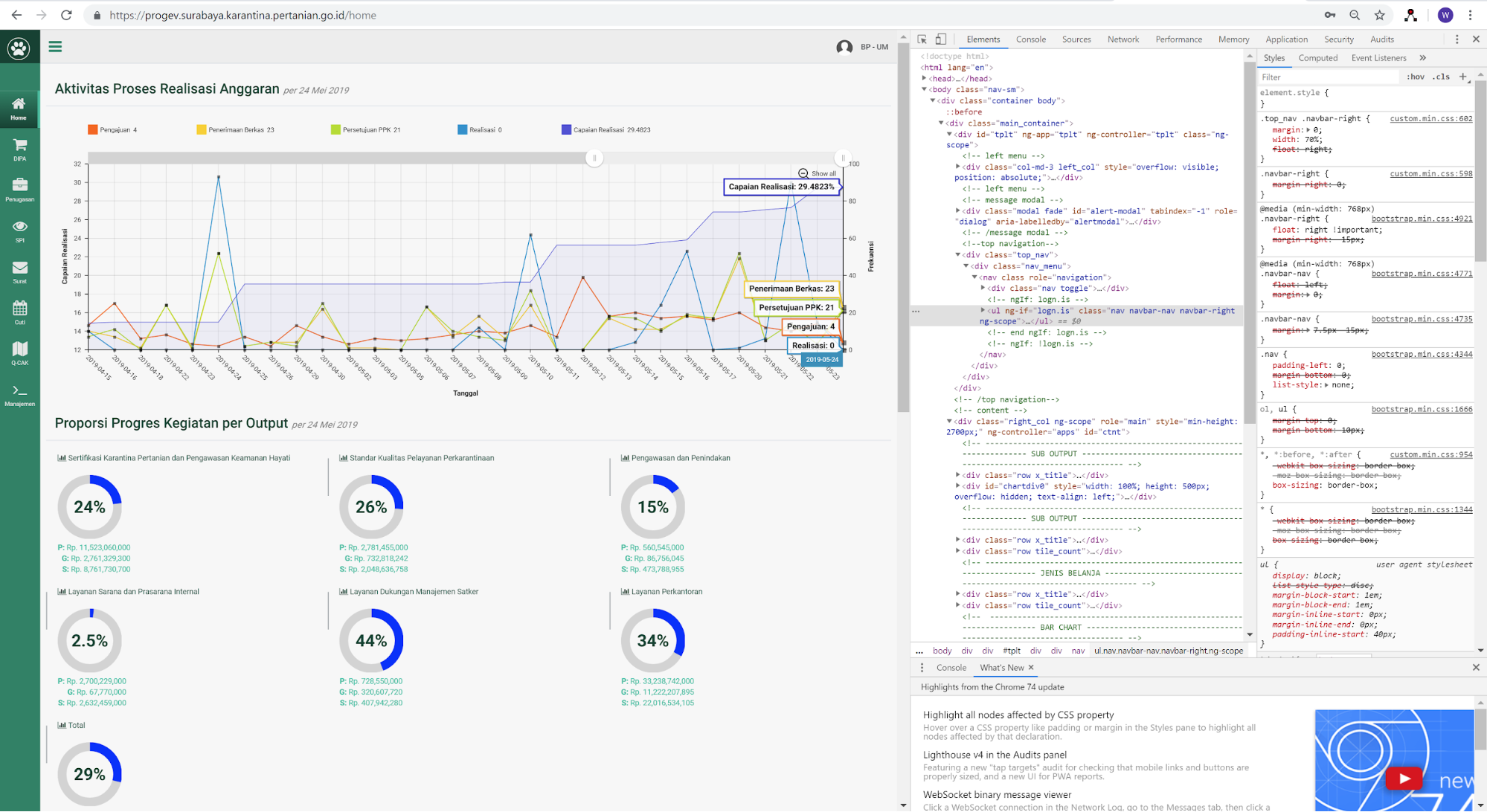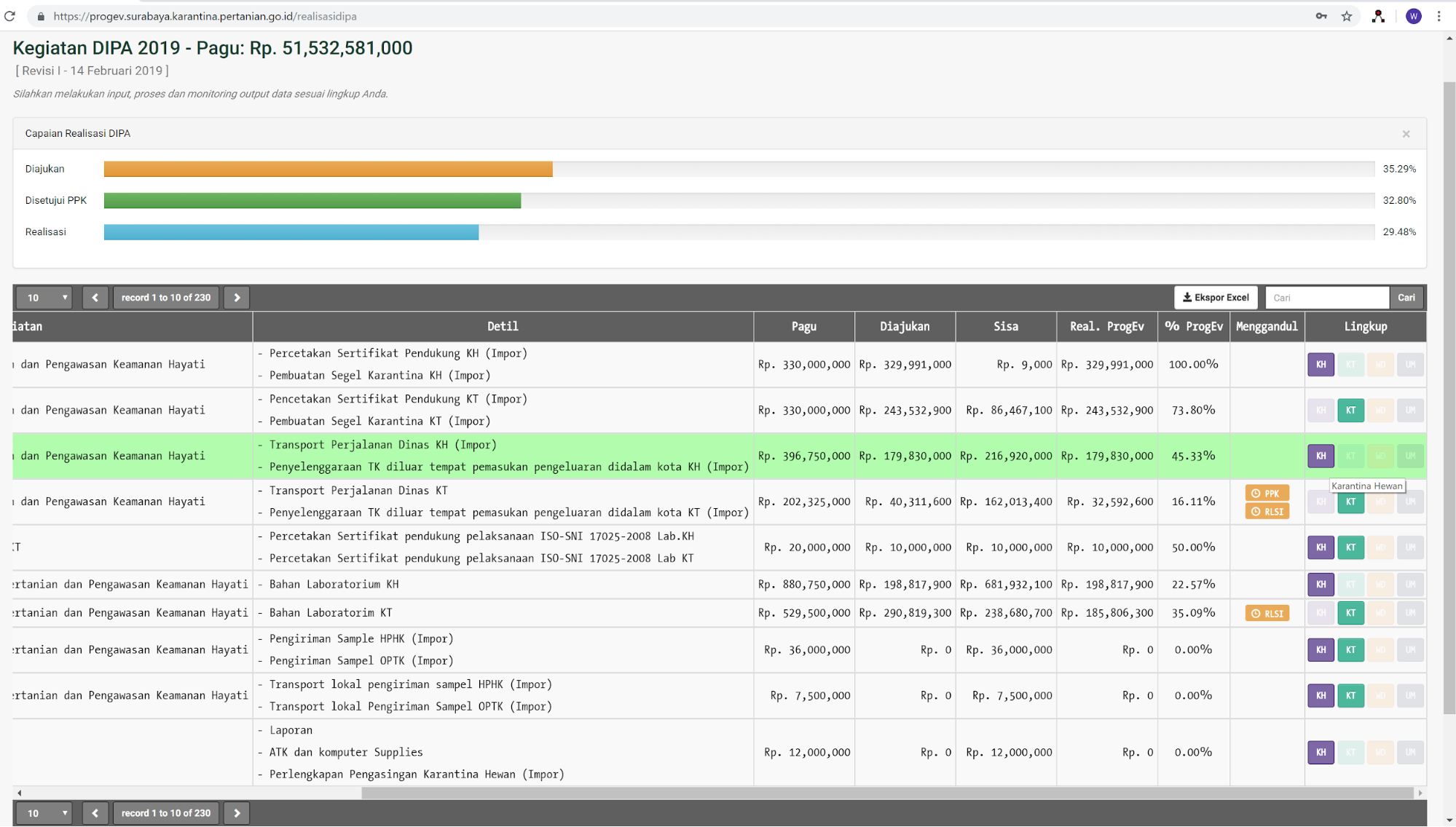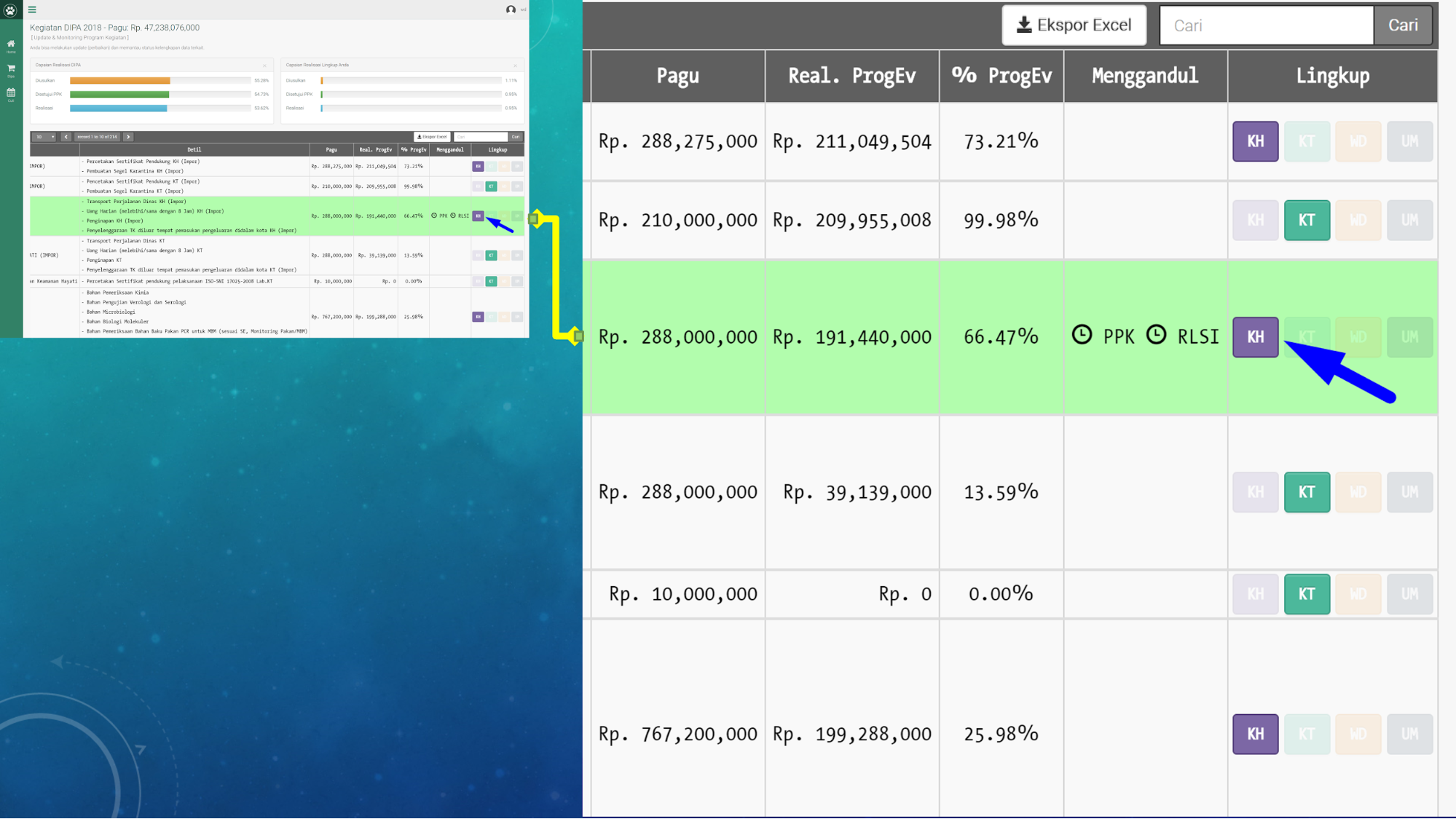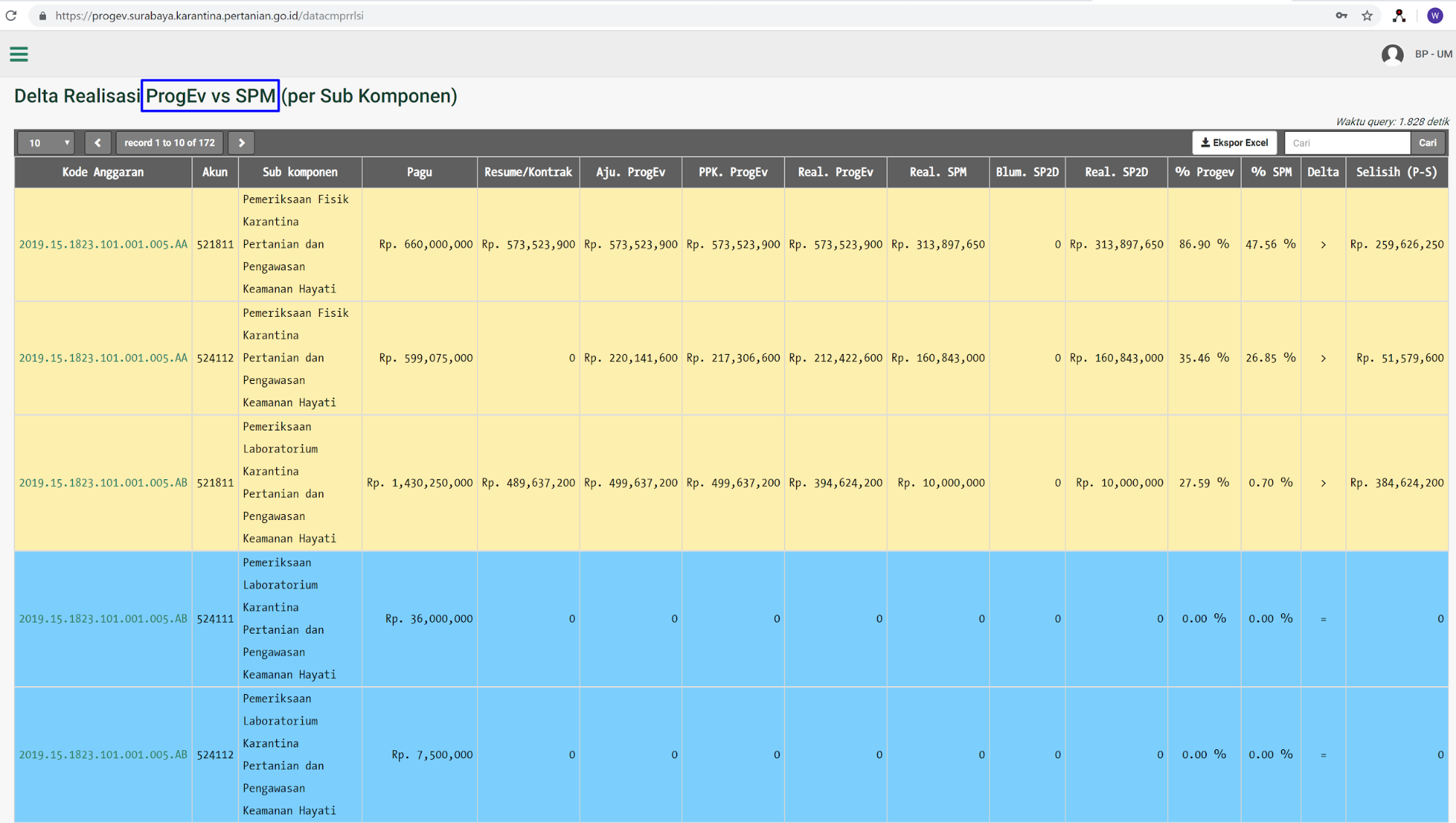 | 22 | Dashboard dan data tabel Realisasi ProgEv selisih dengan SPM | Secara mudah bisa dilakukan pengecekan hingga level Sub-Komponen. |