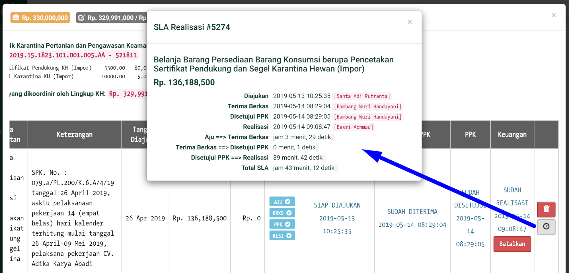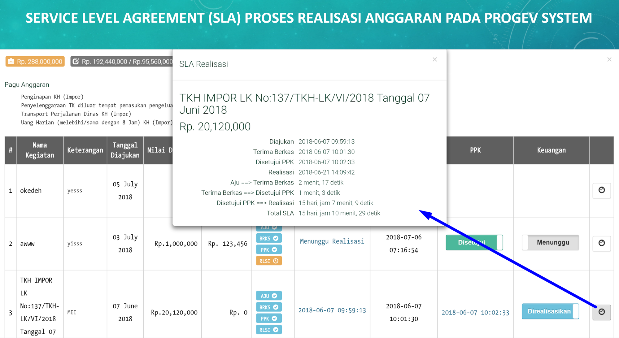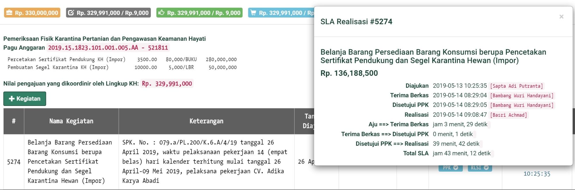 Penambahan beberapa fitur dan SLA pada user interface pengajuan proses kegiatan.