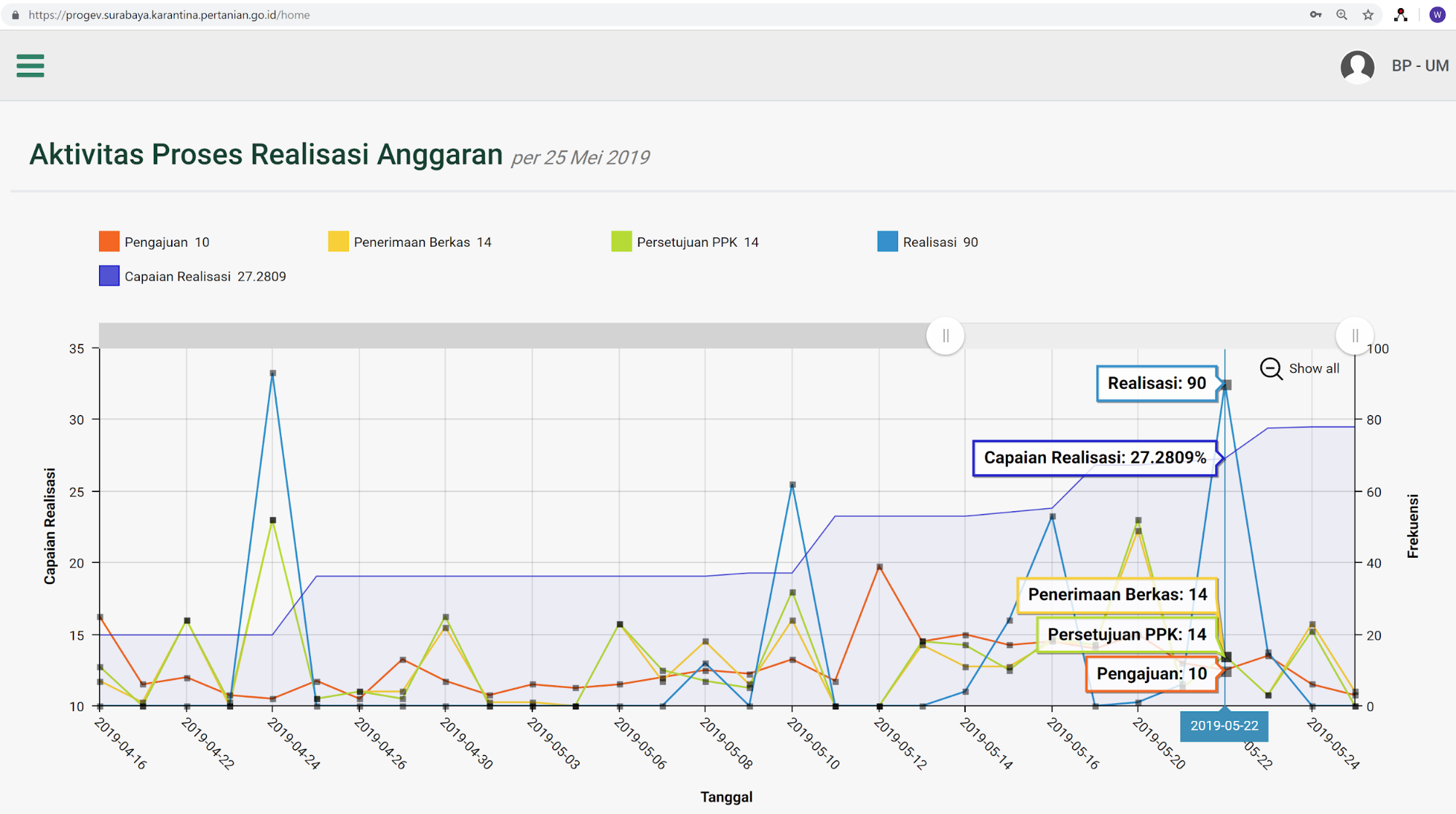 Tingkat kepatuhan pengguna dalam proses tertentu menjadi materi yang akan dimonitor selama prosesnya. Evaluasi terhadap kedisiplinan, khususnya pada tahap PPK dan SPM Realisasi perlu ditingkatkan. Selisih data Realisasi SPM dengan data proses ProgEv menjadi bahasan penting dan hal tersebut menunjukkan anomali proses. Sehingga manajeman memutuskan untuk semakin disiplin dalam proses dan menghilangkan prosedur yang menjadi kebiasaan kurang tepat. Kejadian error / bug sudah tidak terjadi lagi sejak Maret 2019.