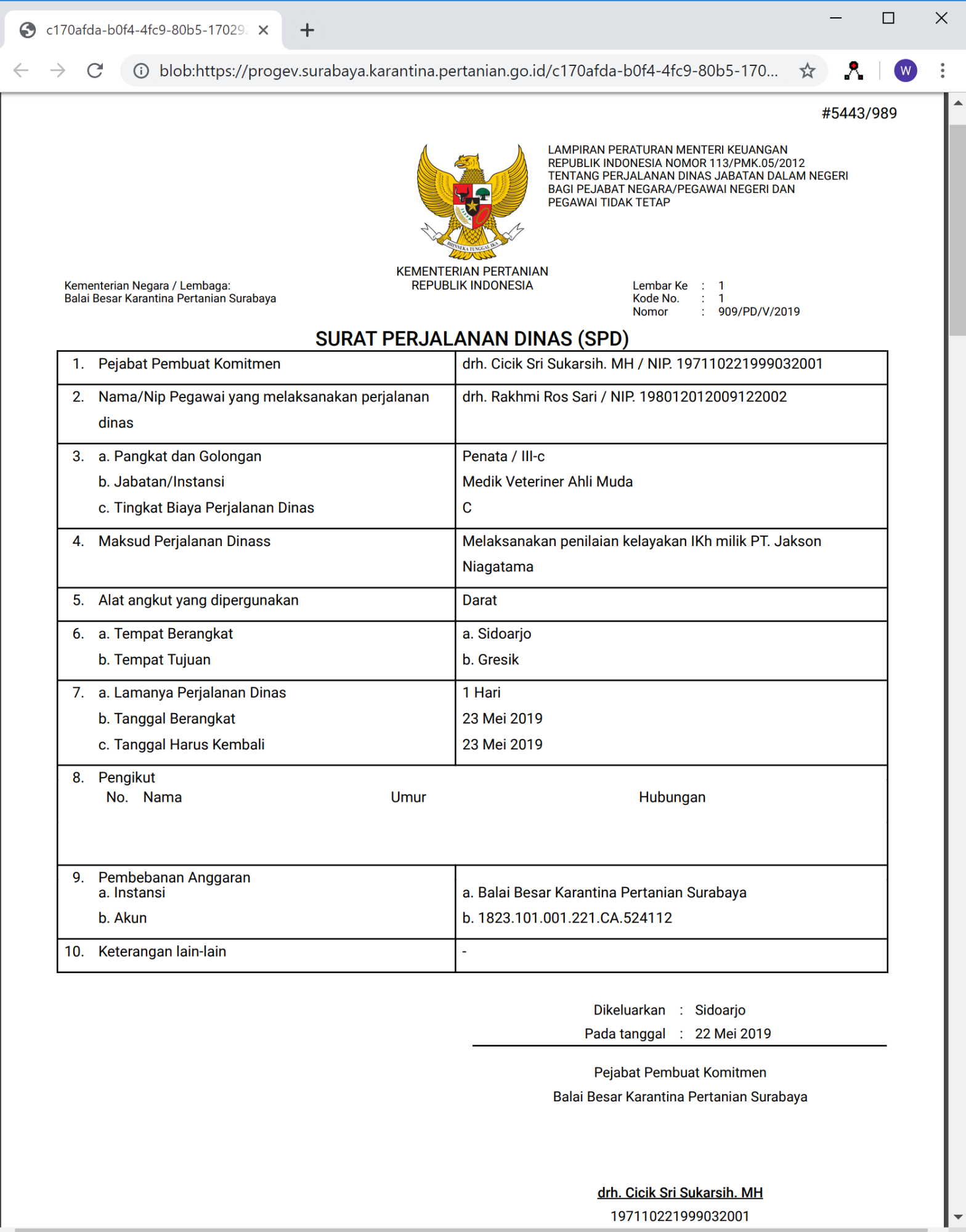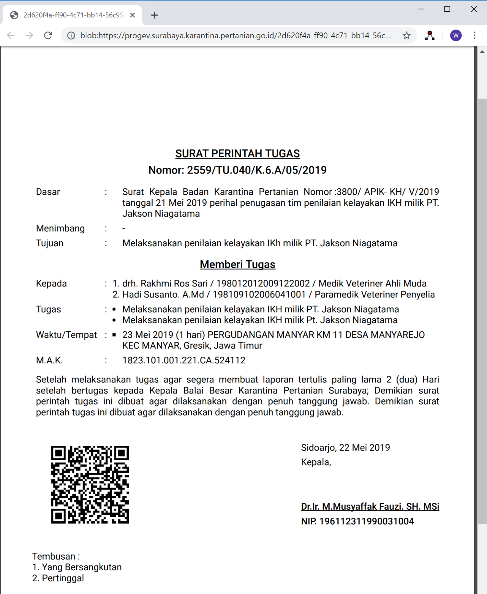 SK Kepala BBKP Surabaya No. 24 Tahun 2019 (1/3)