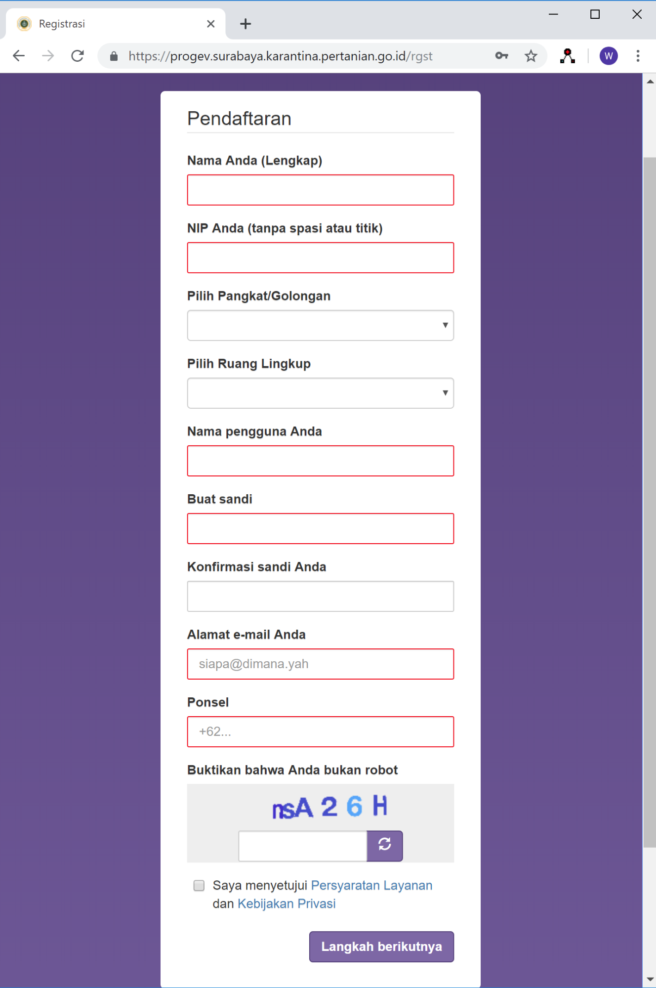 Pendaftaran disediakan pada laman yang terintegrasi.