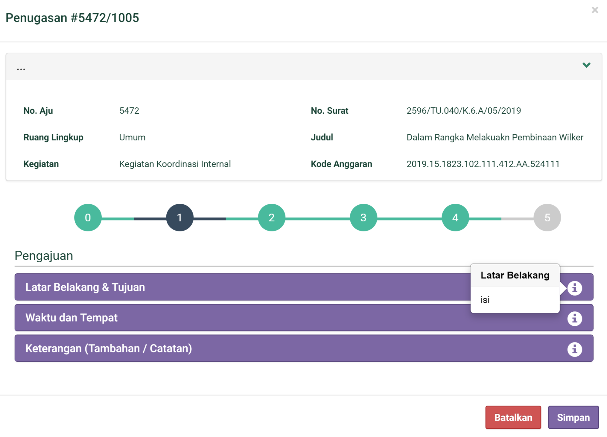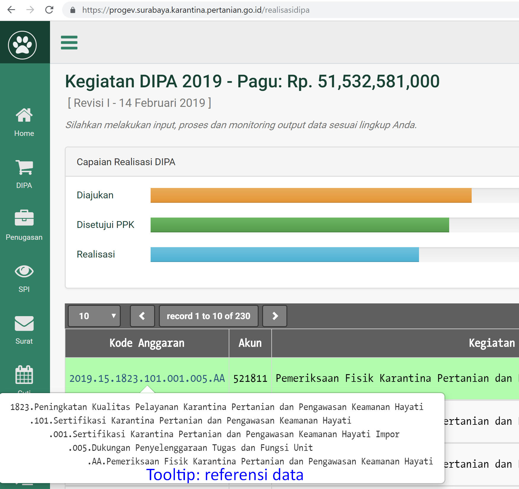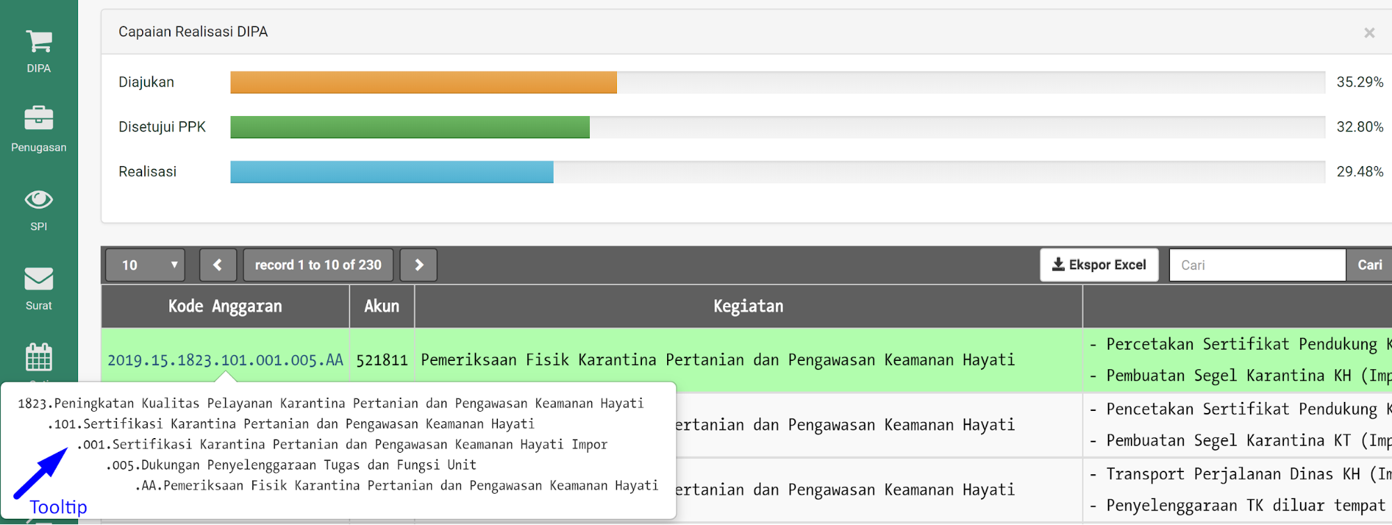 Tooltip detil induk kegiatan agar pemeriksaan kegiatan lebih mudah