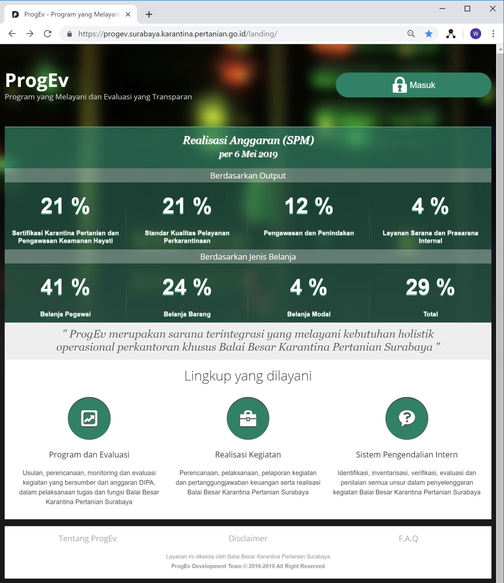 " ProgEv merupakan sarana terintegrasi yang melayani kebutuhan holistik operasional perkantoran khusus Balai Besar Karantina Pertanian Surabaya "