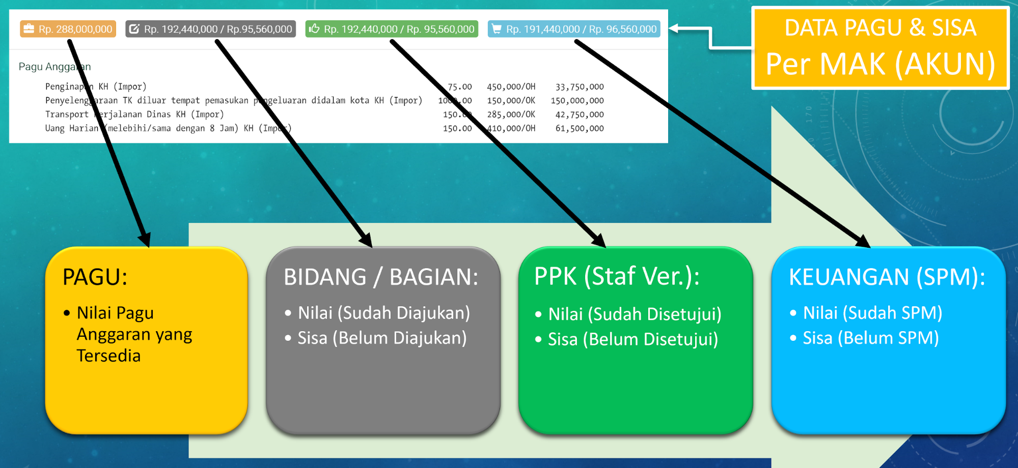 Tramsaksi data pengajuan, pencetakan surat tugas, SPPD, pelaporan dan kuitansi.