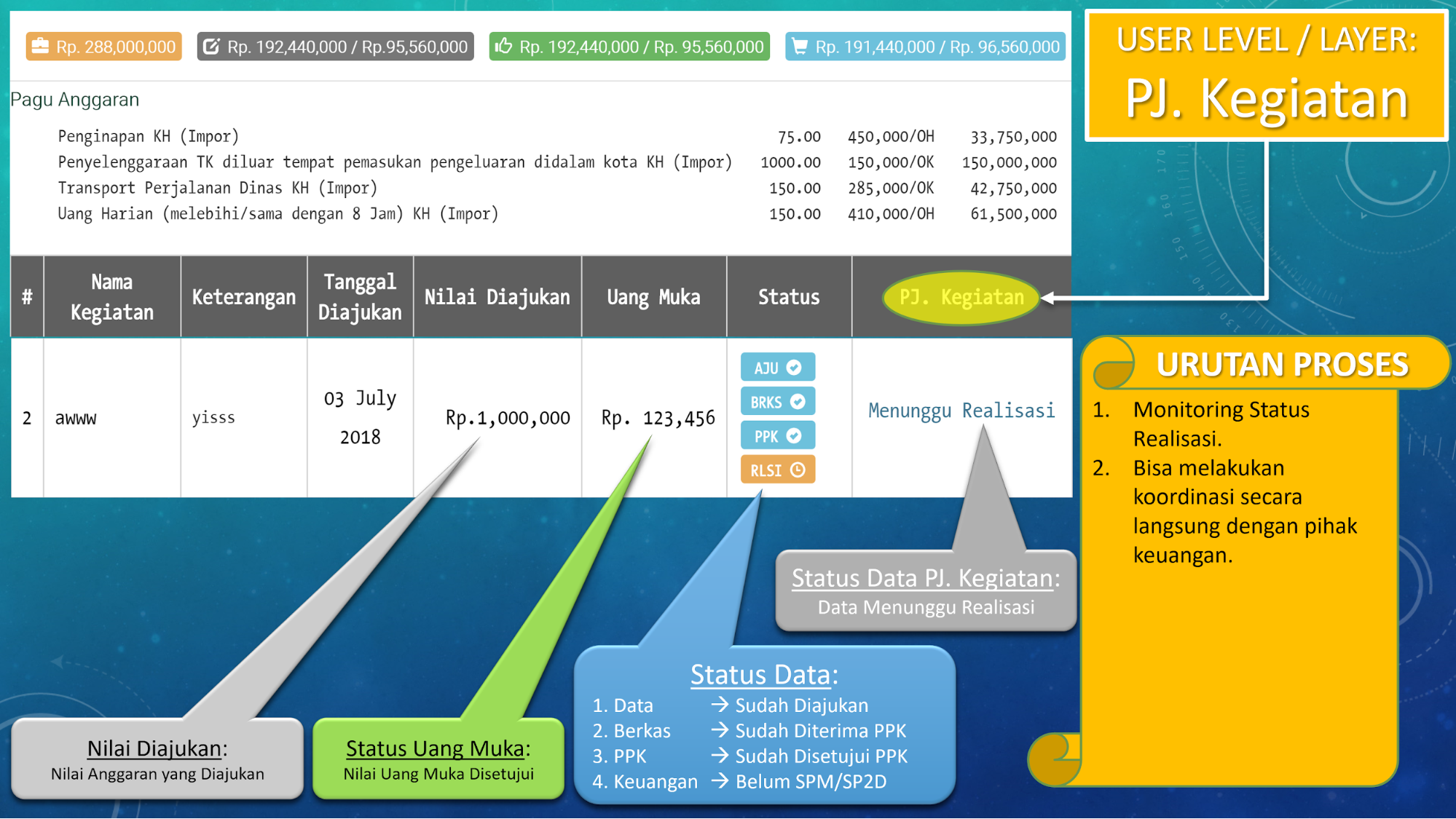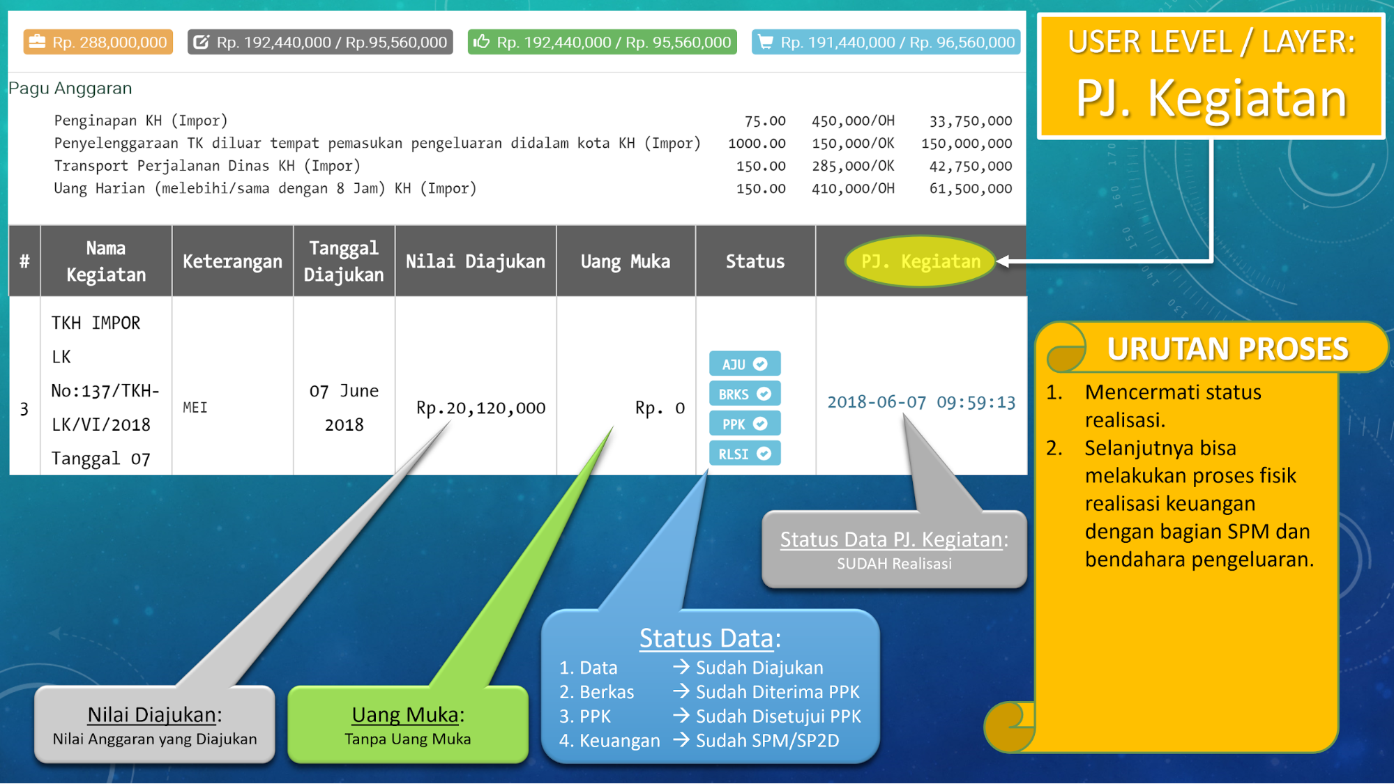 - Pada saat itu sistem mengawali dengan mengelola input dan pengajuan TOR kegiatan.