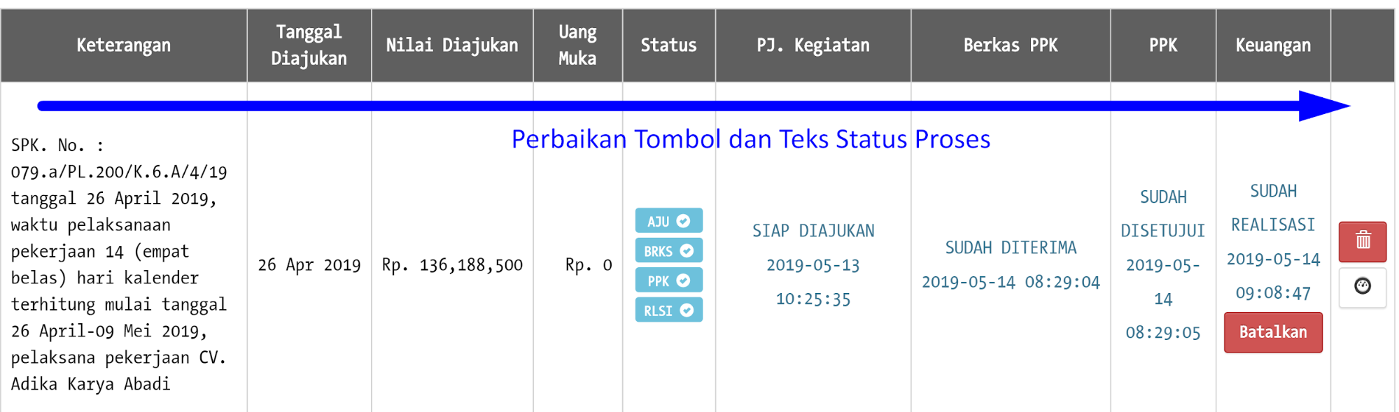 | Proses | 16 | Kapan Klik Ajukan | Saat dimana semua berkas dinyatakan lengkap, siap untuk diserahkan dan diperiksa oleh verifikator/PPK. |