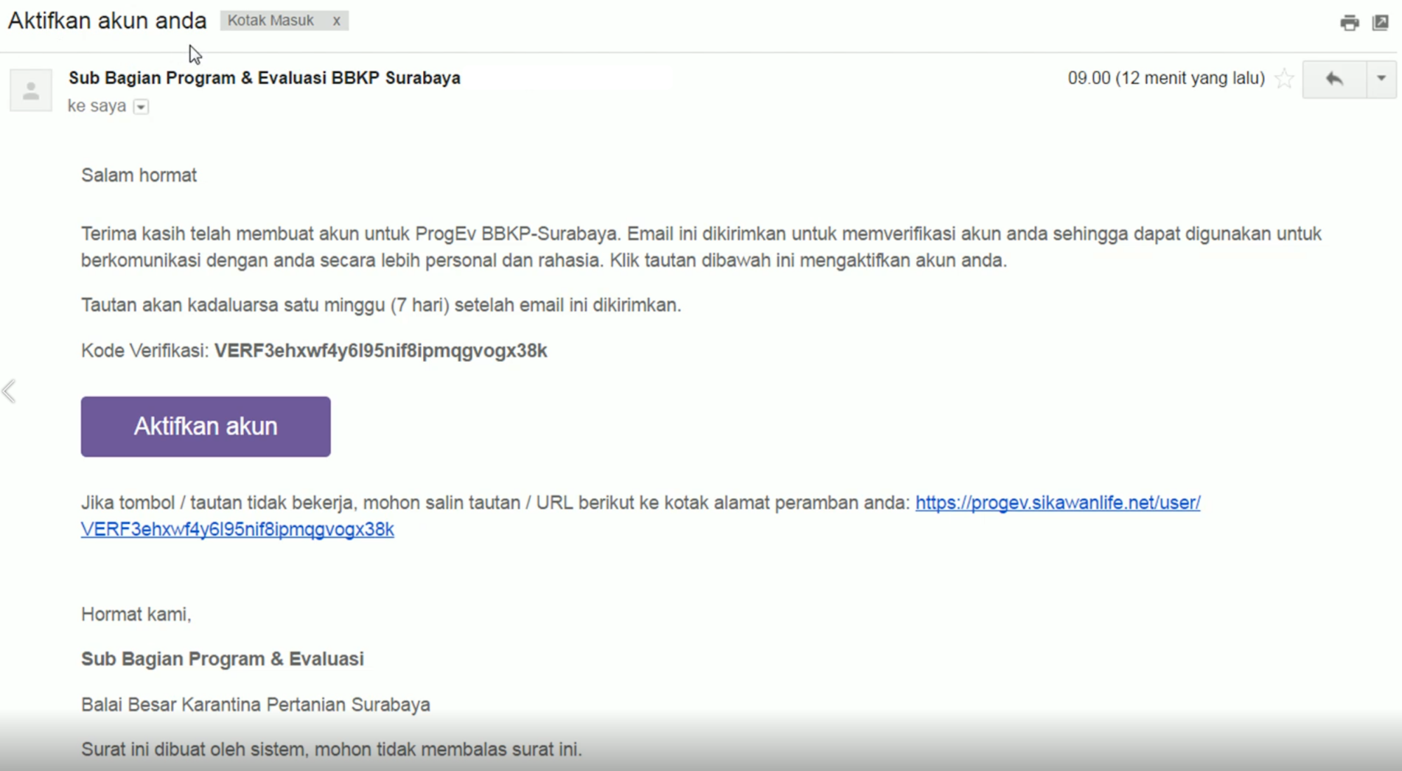Verifikasi pendaftaran oleh SysAdmin ProgEv.