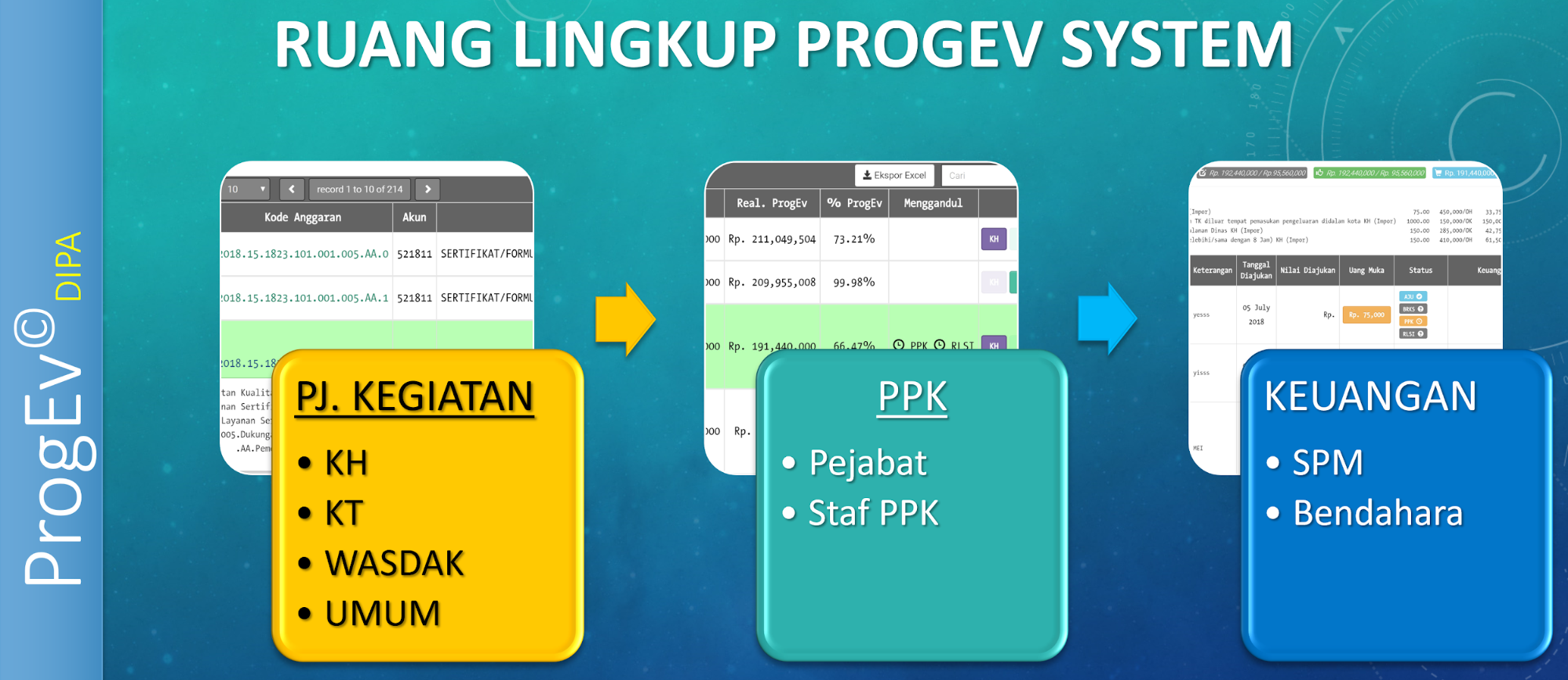 ProgEv merupakan aplikasi multi user & multi level acces control dengan tata kelola sebagaimana prosedur yang telah ditetapkan sesuai SOP.